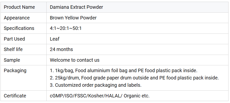 1. Damiana has long been claimed to have a stimulating effect on libido, so it can enhance the sexuality;